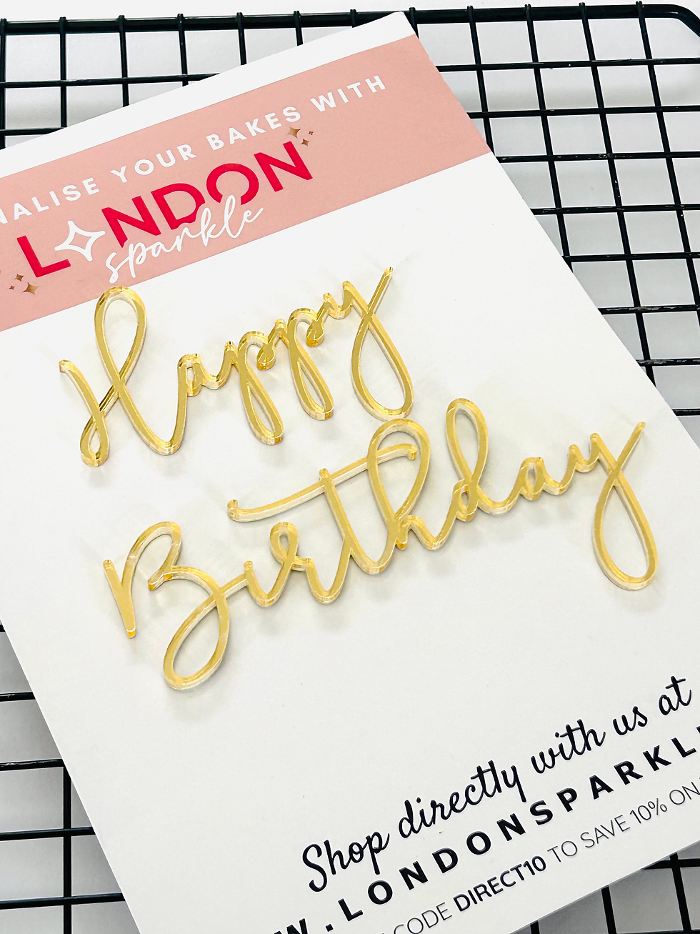 Happy Birthday Gold Mirror Acrylic Cake Charm